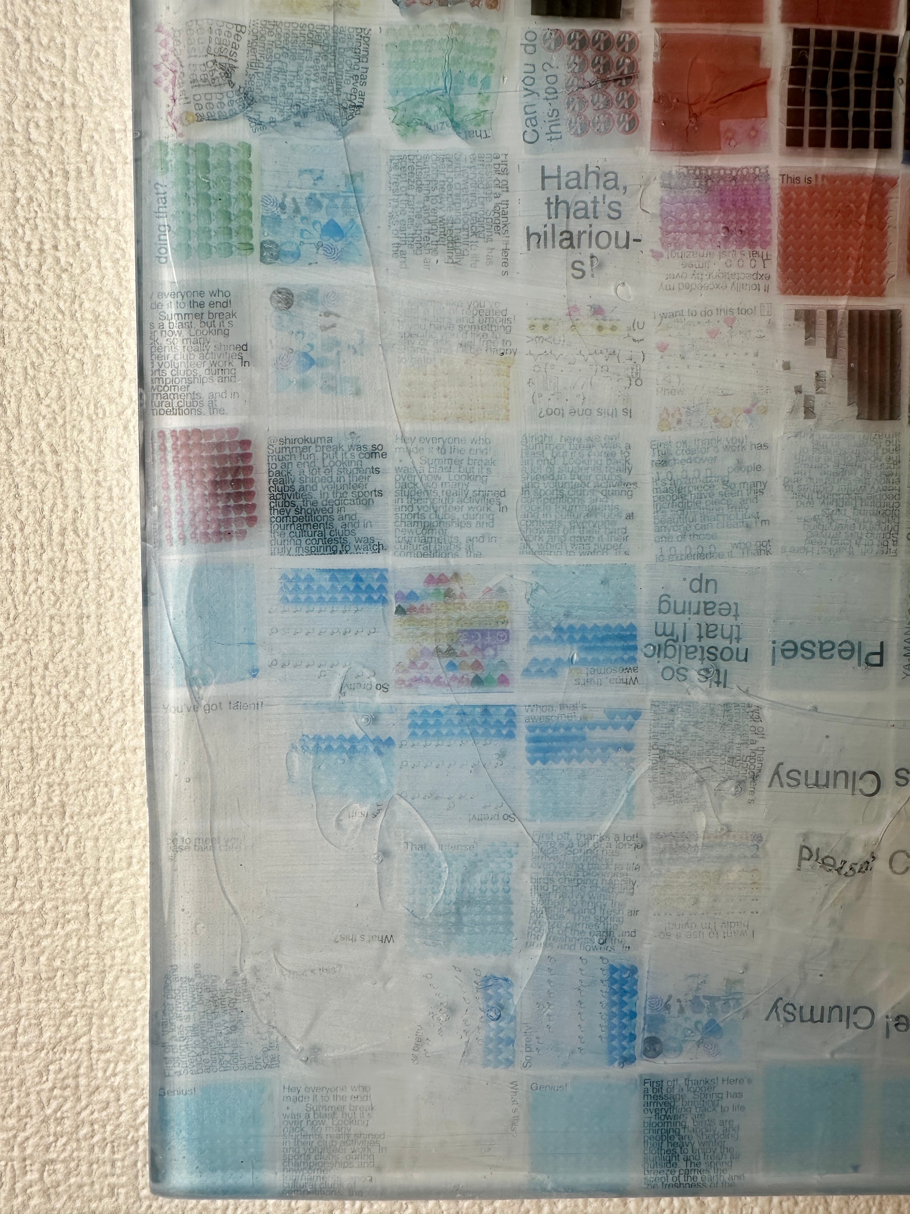 Through the process of collecting, dissolving, reconstructing, and sealing these voices into the surface, the artwork transforms intangible communication into a physical presence.