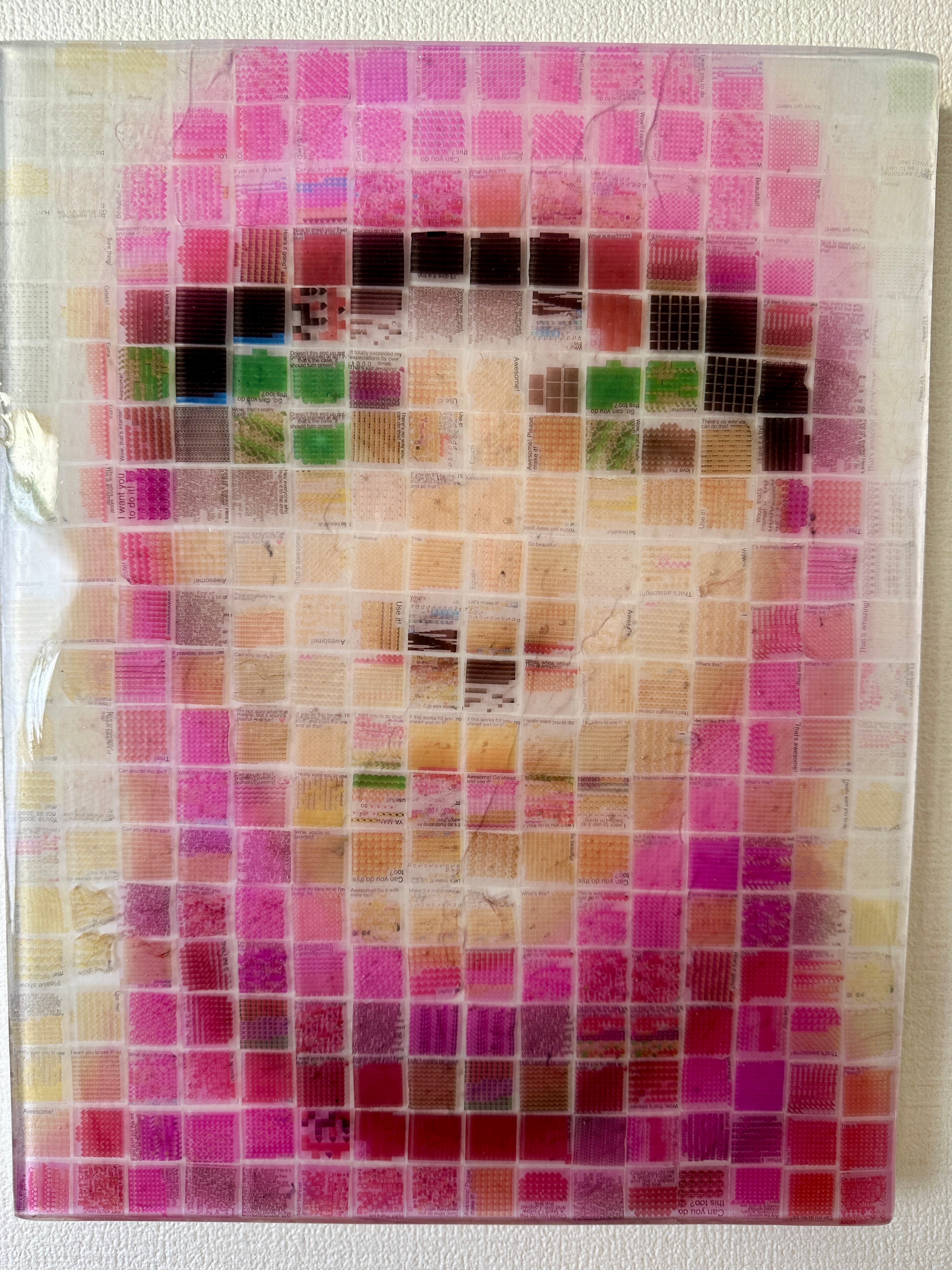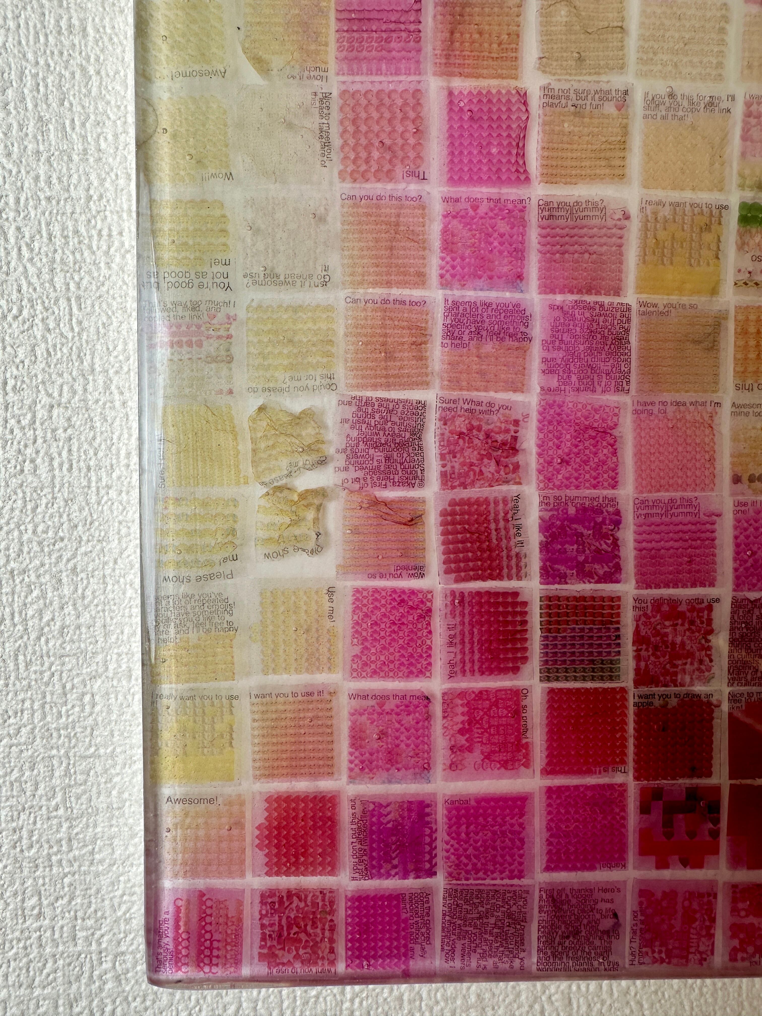 Through the process of collecting, dissolving, reconstructing, and sealing these voices into the surface, the artwork transforms intangible communication into a physical presence.